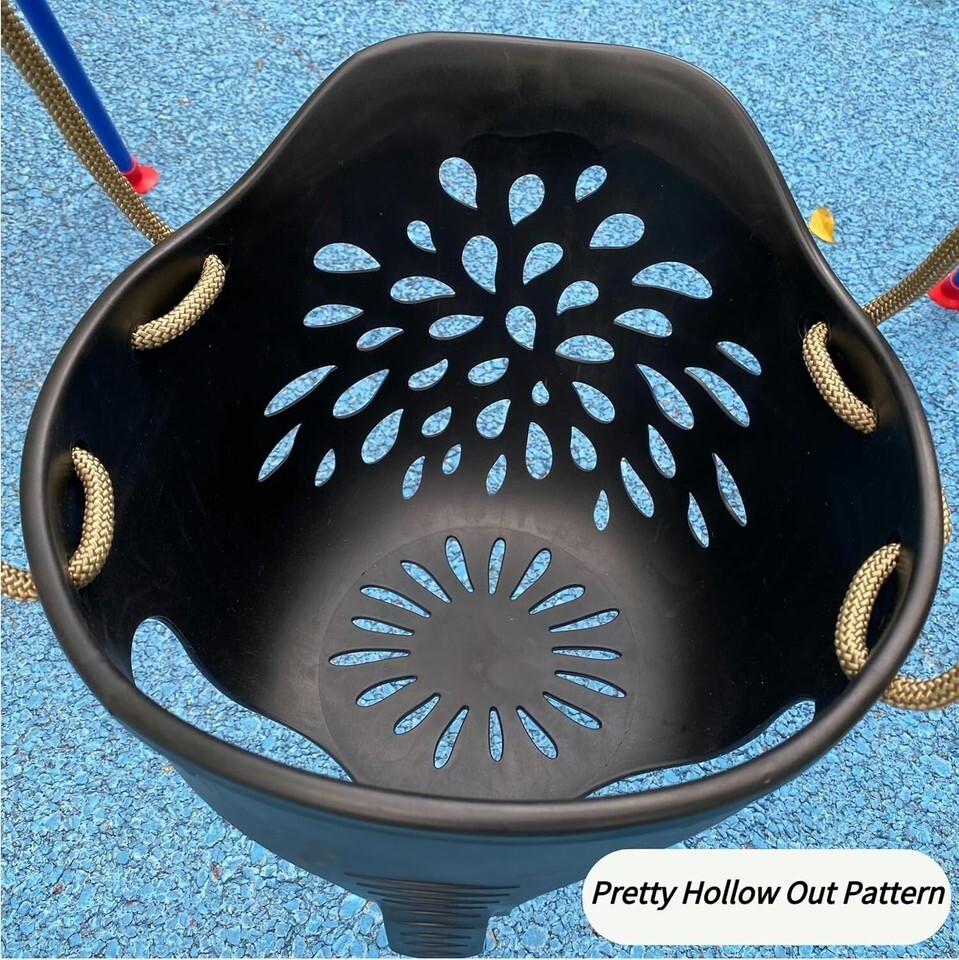 The Bucket swing seat is made of soft EVA plastic, with a bigger size(''*''*'') than others, which can fit from 18 to 4 s old. Soft EVA plastic provides better protection, safe and durable, weather proof.