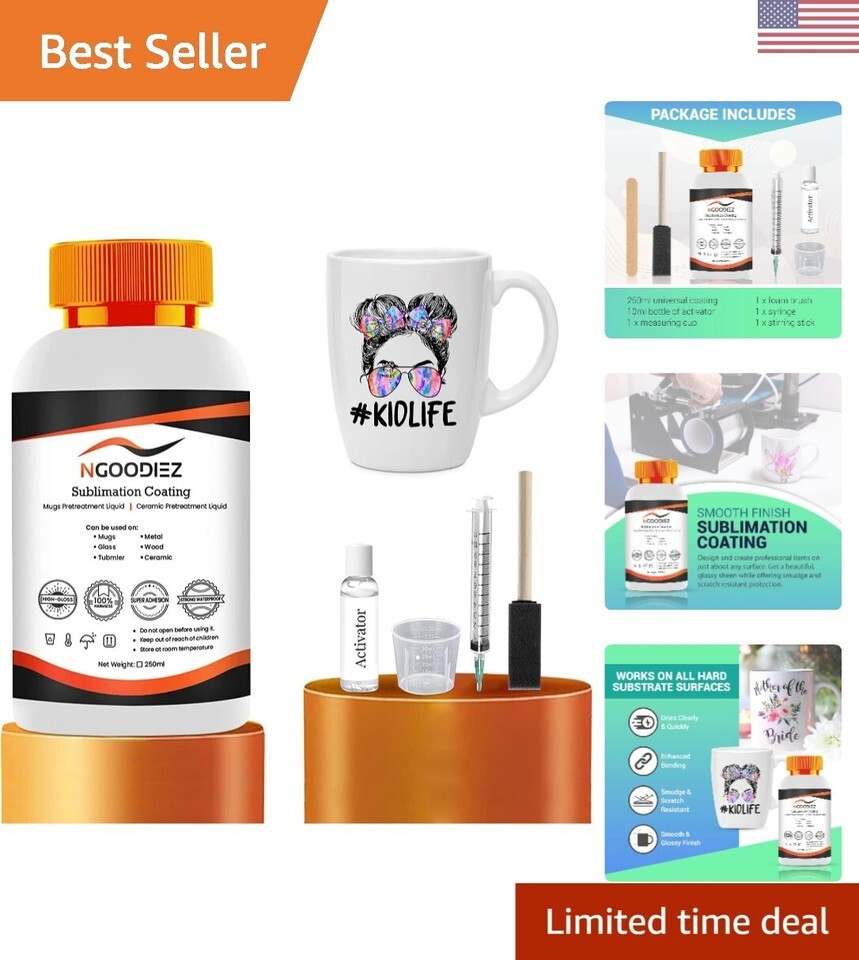 Sublimation Coating for Mugs, Ceramic Mugs, Metal Mug, Wood, Glass, Case, Leather, Tumbler - Sublimation Supplies with High Gloss Finish, Waterproof and Super Adhesive - 250ml