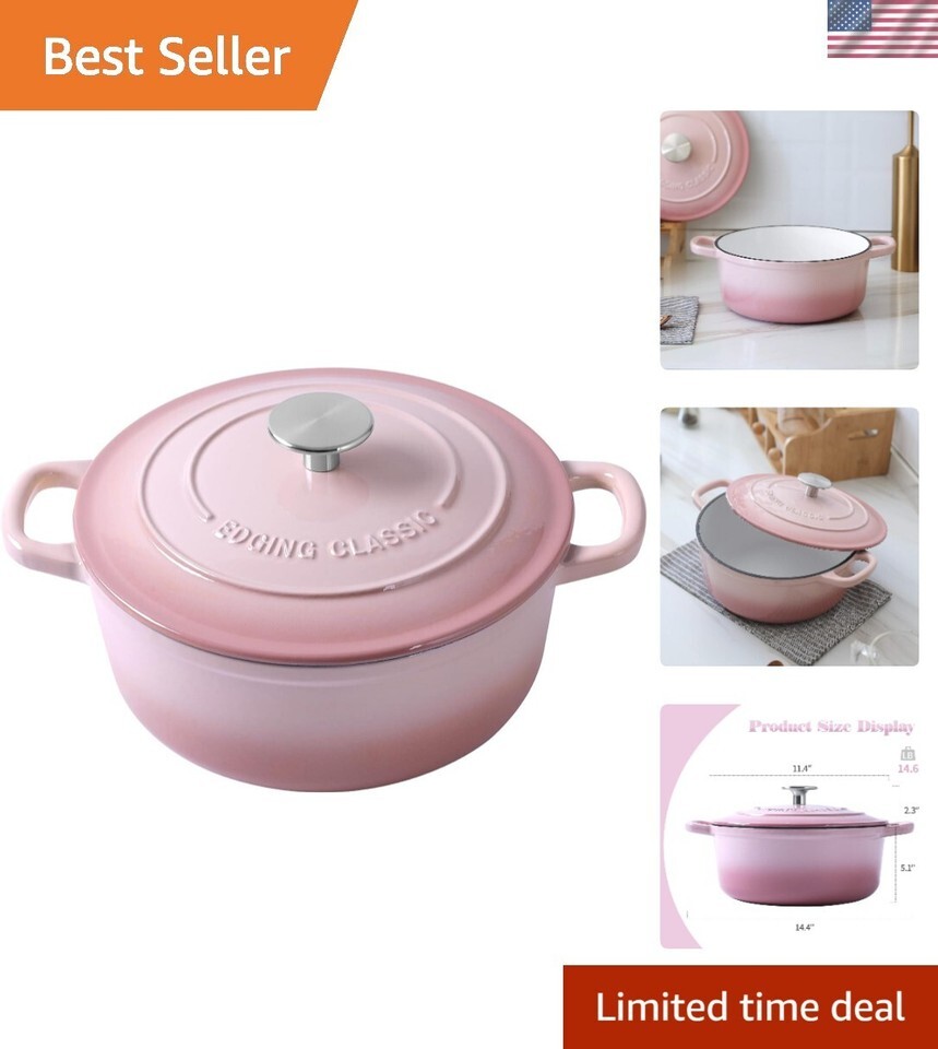 Enameled Cast Iron Covered Dutch Oven with Lid Round Pot for Bread Baking, 7 Quart, Pink
