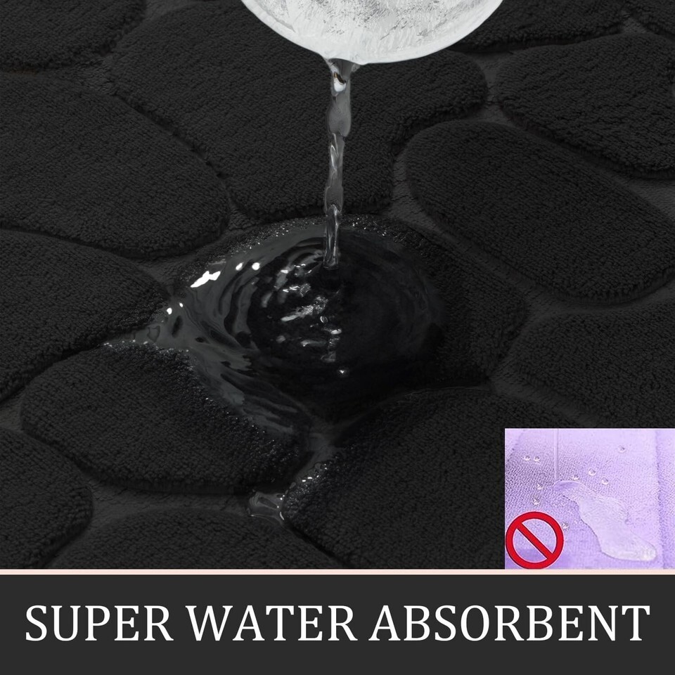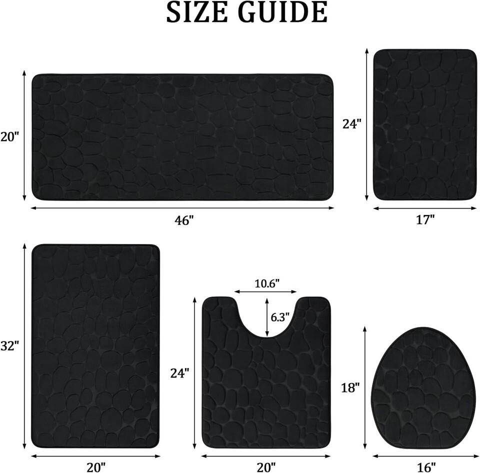 Bathroom Rugs Sets 5 Piece, Cobblestone Memory Foam Bathroom Mats Set Extra Thick, Non Slip Bath Mats for Bathroom, Water Absorbent, Washable Black Bath Rugs for Tub, Toilet and Floor