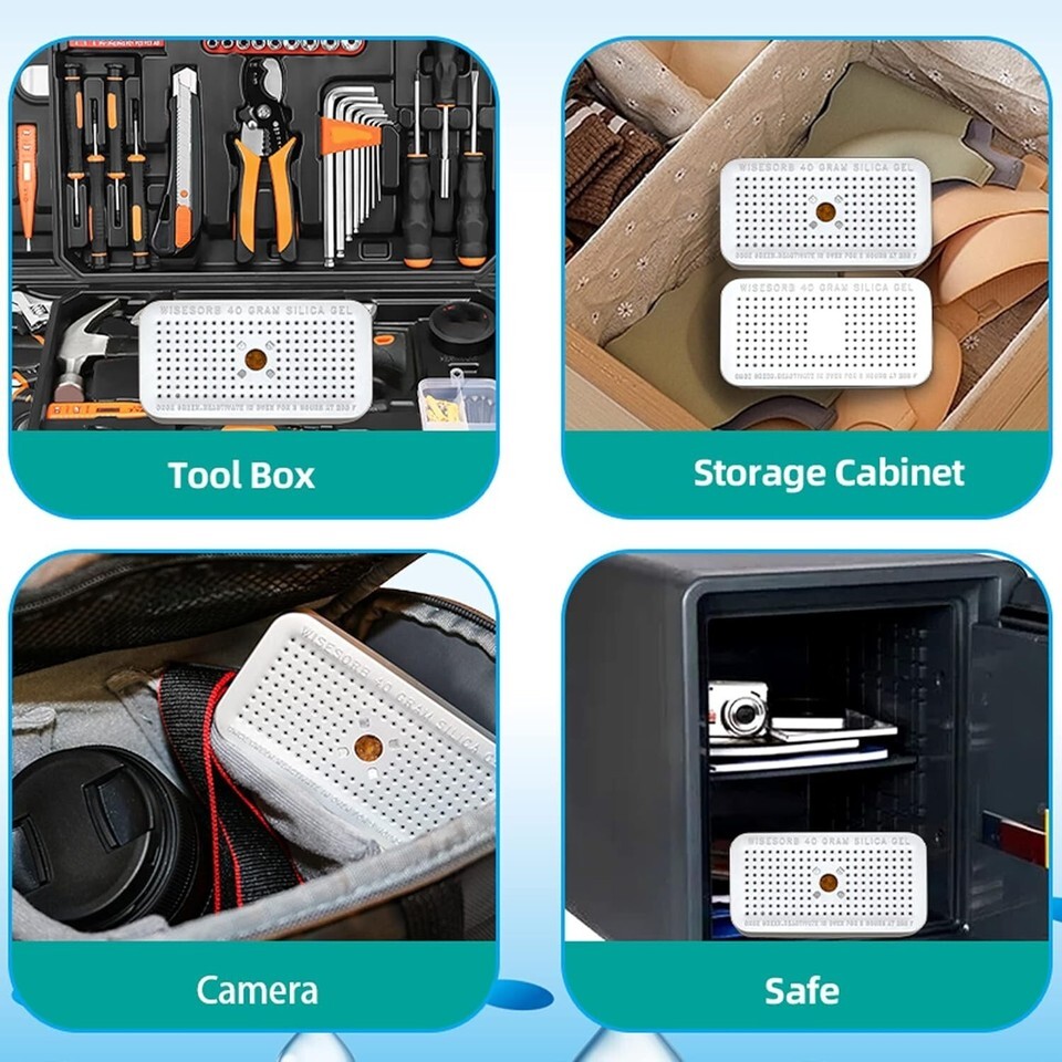 ?Package Contents?: You will receive 20 packs of 40 gram indicating desiccant canisters. Each desiccant canister is individually packed in bags for easy storage. It is perfect for safeguarding guns, important documents, collectibles, books, jewelry, photo albums, shoes, camera lenses, expensive photography equipment, toys, leather clothing, ammunition, and photo equipment. Its versatile usage ensures the preservation and protection of a wide range of valuable items.