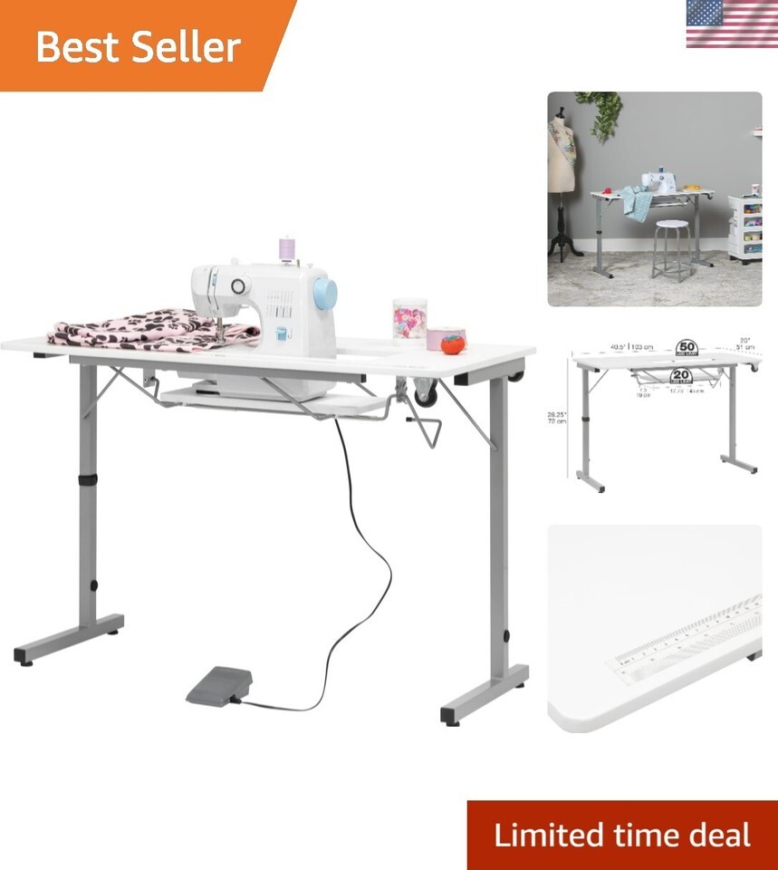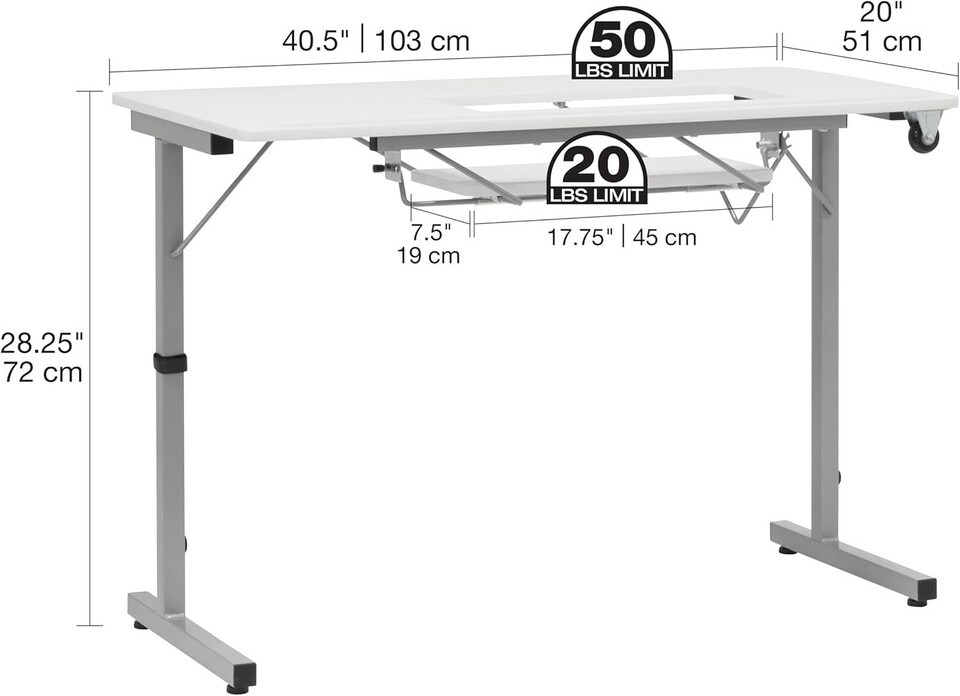 Rollaway II Compact Portable Folding Sewing Table, Silver/White