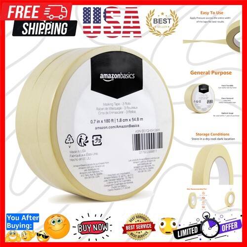 Beige Multi-Surface Masking Tape, 3 Rolls - Easy Tear-by-Hand for Precision Work