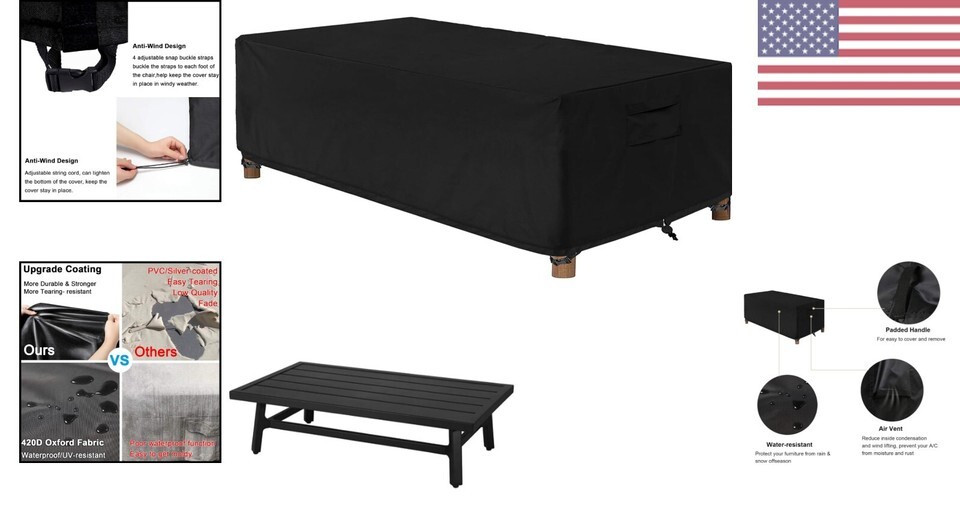 Protect your outdoor furniture investment with our Heavy-Duty Waterproof Patio Coffee Table Cover. Made of high-quality materials and designed for durability, this cover will keep your patio table and chairs safe from the elements. With easy maintenance and a secure fit, you can trust that your furniture will stay looking new for years to come.