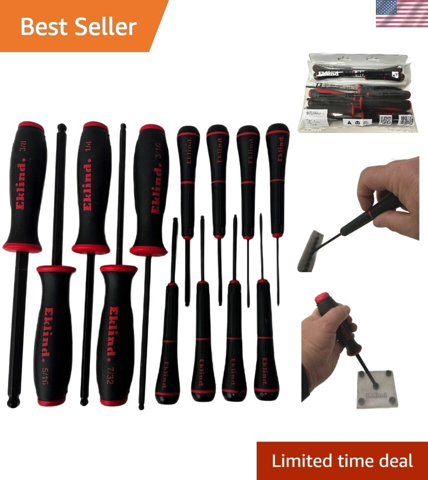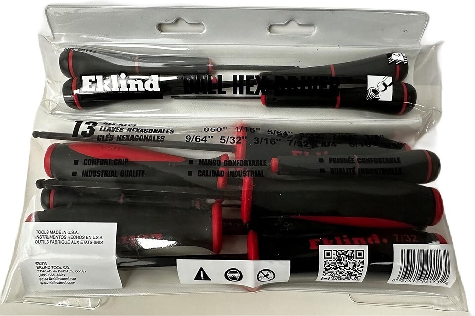 COMPANY is America's leading manufacturer of high quality, industrial grade hex keys, made with pride in the since 1950. The EKLIND Ball-Hex (allen) Screwdriver - 13pc set SAE Inch Sizes .050-3/8 meets the most stringent requirements of professional mechanics, tradespeople, do-it-yourselfers and hobbyists.