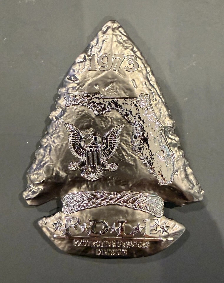 Florida FDLE Governors RED Detail Arrowhead design. The coin is thematically centered around militaria, making it a sought-after collectible for enthusiasts and collectors alike. With its distinctive design and limited availability, this challenge coin is a valuable addition to any collection of military memorabilia.