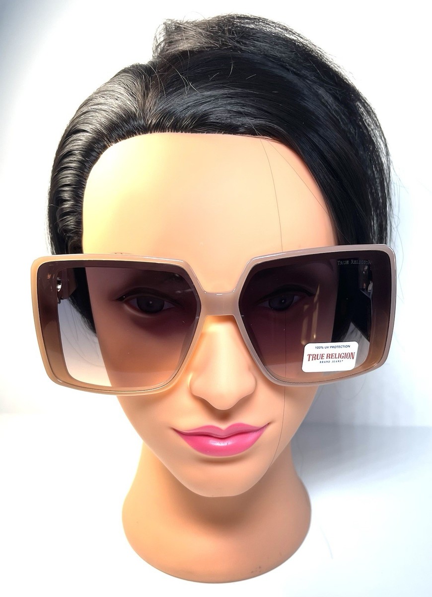 NEW TRUE RELIGION Brown Logo Oversized TR56234XK Sunglasses + Case