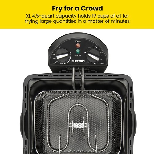 * FRY FOR THE FAMILY: Great for a hungry crowd, this fryer?s 4.5-liter capacity fries large portions of French fries, doughnuts, fried chicken, homemade chips, mozzarella sticks, and more. Throwing a party, having the holidays at your house or just have a love fried food. Make sure this fryer is a part of your cooking plans.