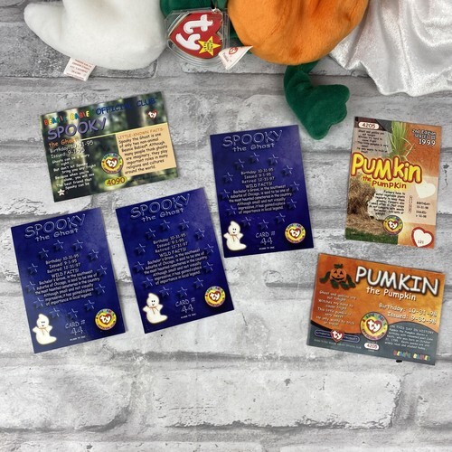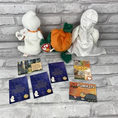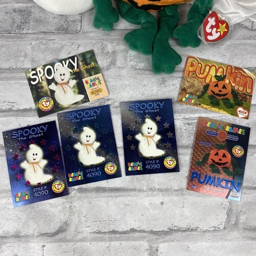 Ty Beanie Babies Lot of 3 Halloween Sheets Spooky Pumpkin W/Trading Cards