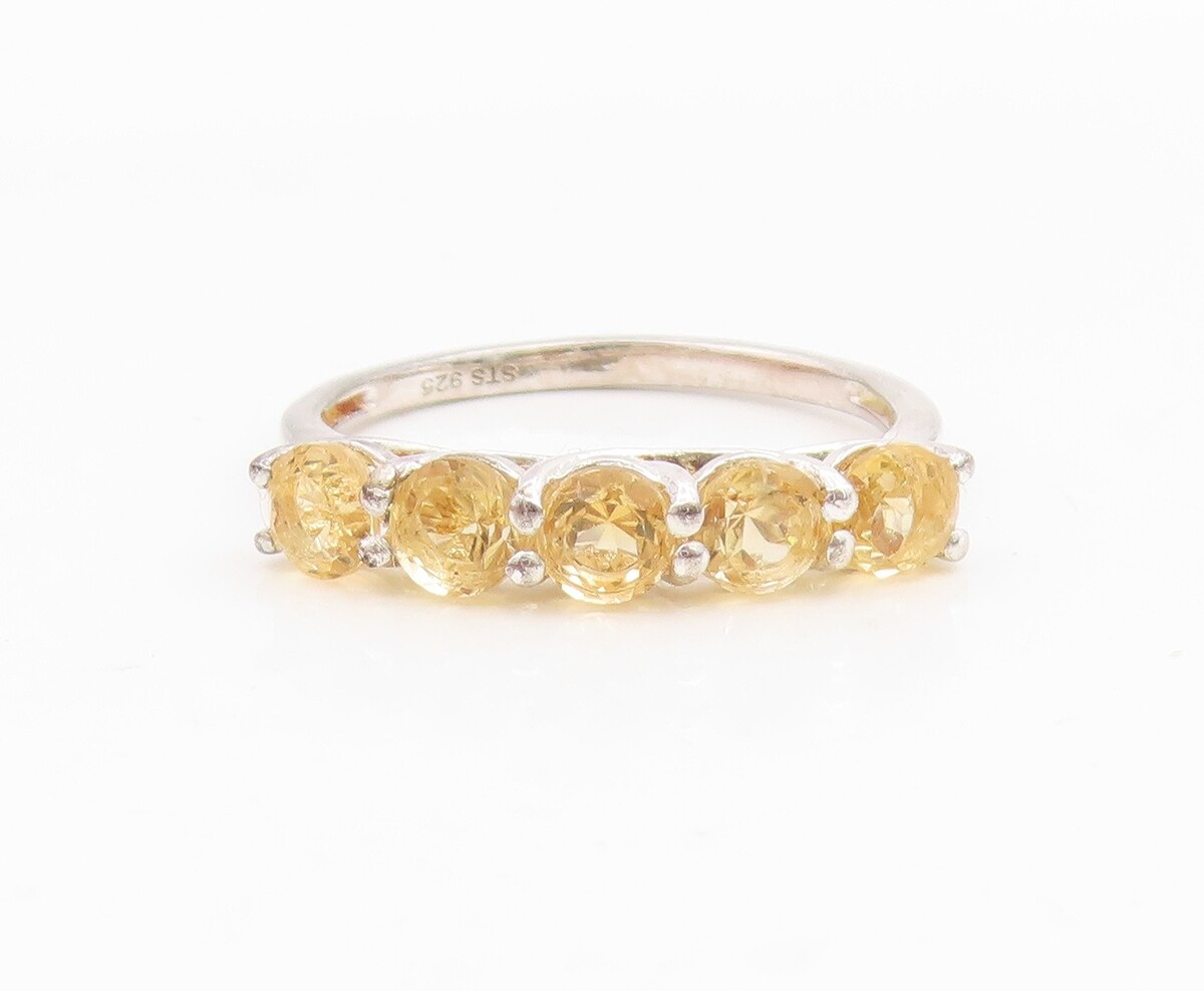 925 Sterling Silver Vintage Ring Five Stone Citrine Elegant Band Sz 8.5 RG34998
