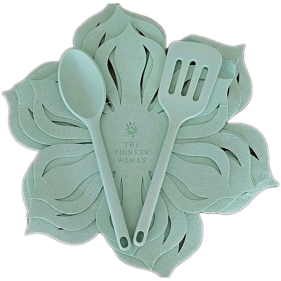 Pioneer Woman ~ Six (6 ) Piece Set ~ 4-Felt Protectors ~ 2-Silicone Utensils