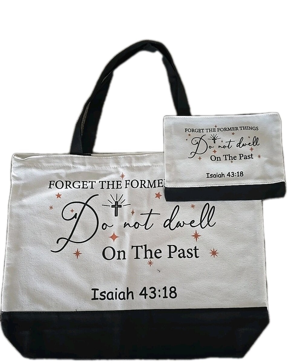 Christian Canvas Tote Bag w/Handle & Makeup Bag w/Zip Closure ~ Bible Verse(10)