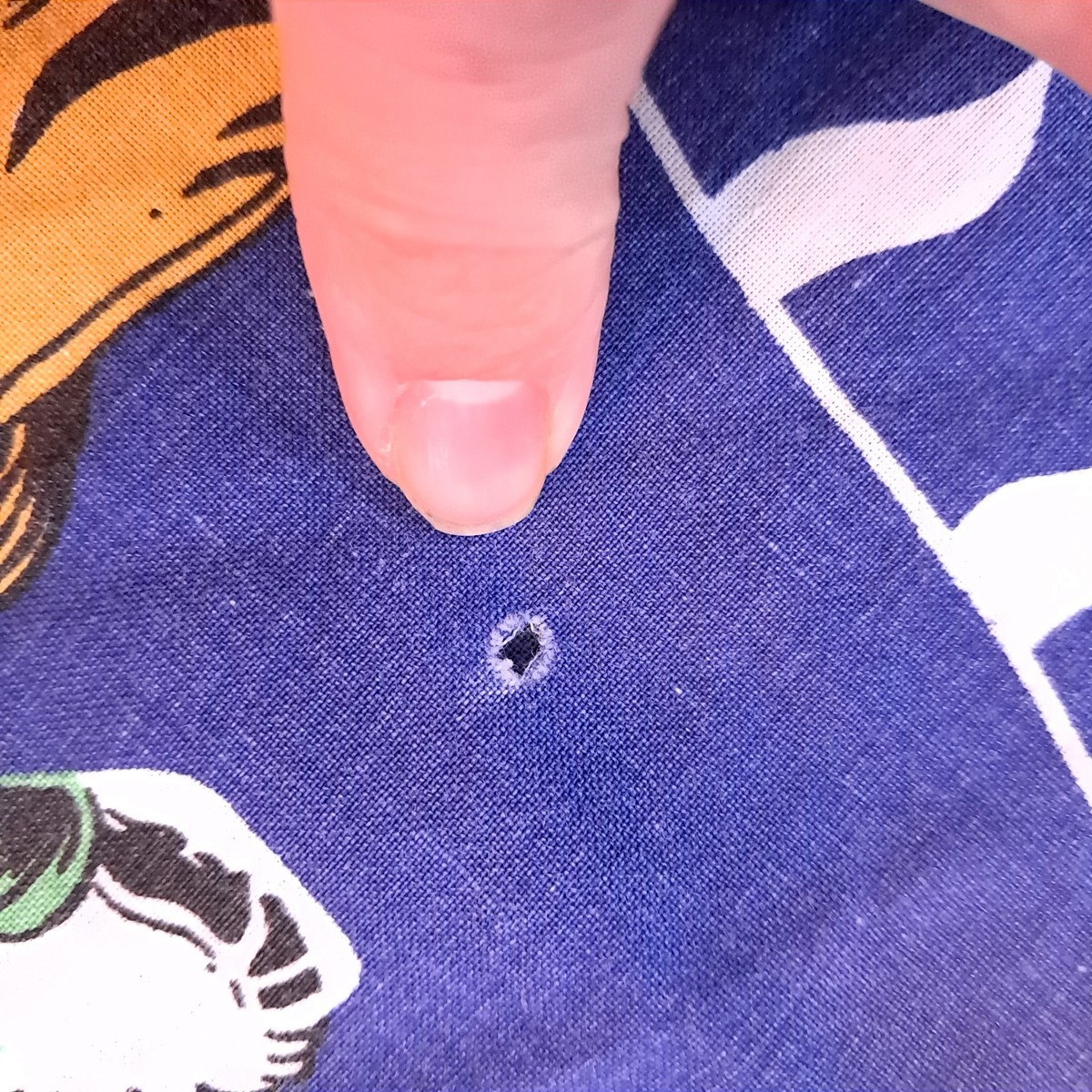 Some small holes/wears/runs as shown. Snaps at the bottom.