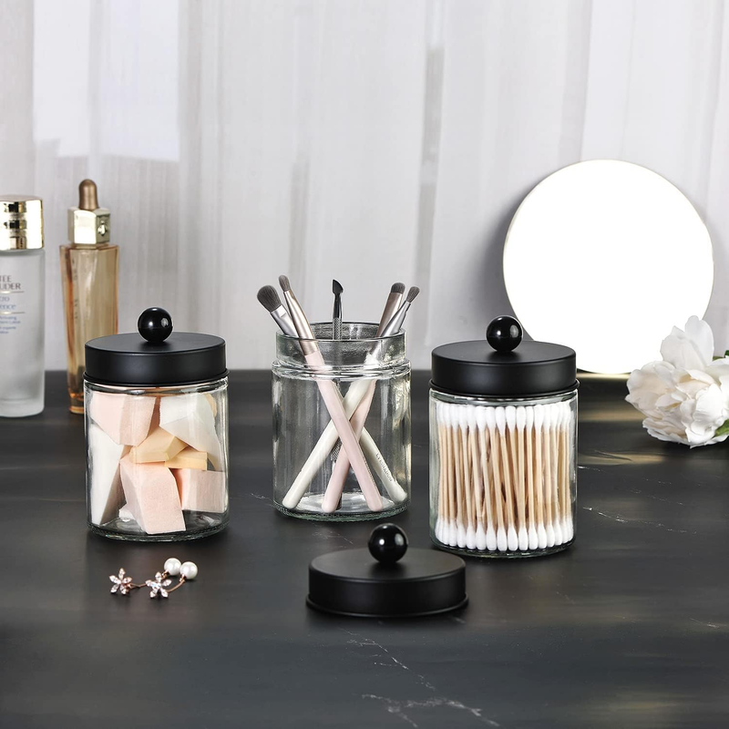 3 Pack Apothecary Jar Canisters Bathroom Vanity Organizer - Qtip Holder Storage