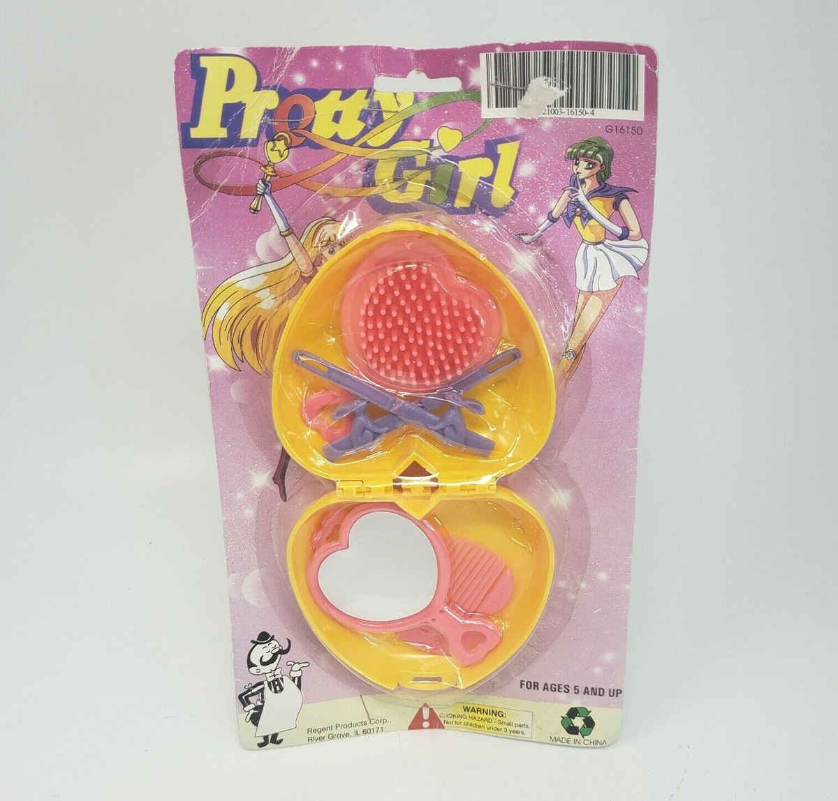 VINTAGE 1990's REGENT PRODUCTS PRETTY GIRL COMPACT HEART MIRROR BRUSH COMB TOY