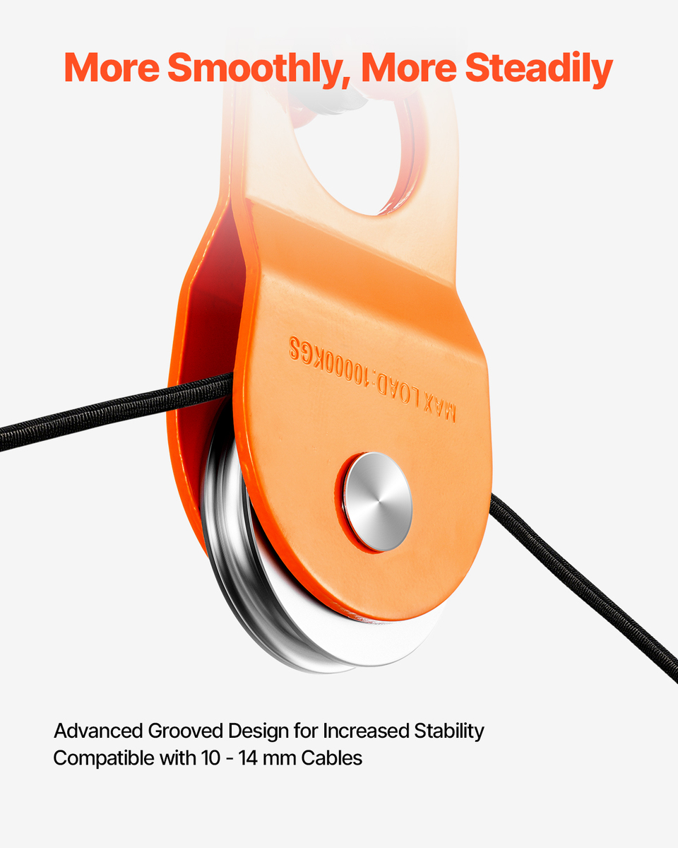 Upgraded Hook Design: The groove in the middle of the snatch block pulley helps the rope stay in place, reducing the risk of slipping out or becoming unevenly loaded. This provides smoother, more secure lifting and pulling. It is compatible with 3/8-inch ropes and fits most standard rope sizes.