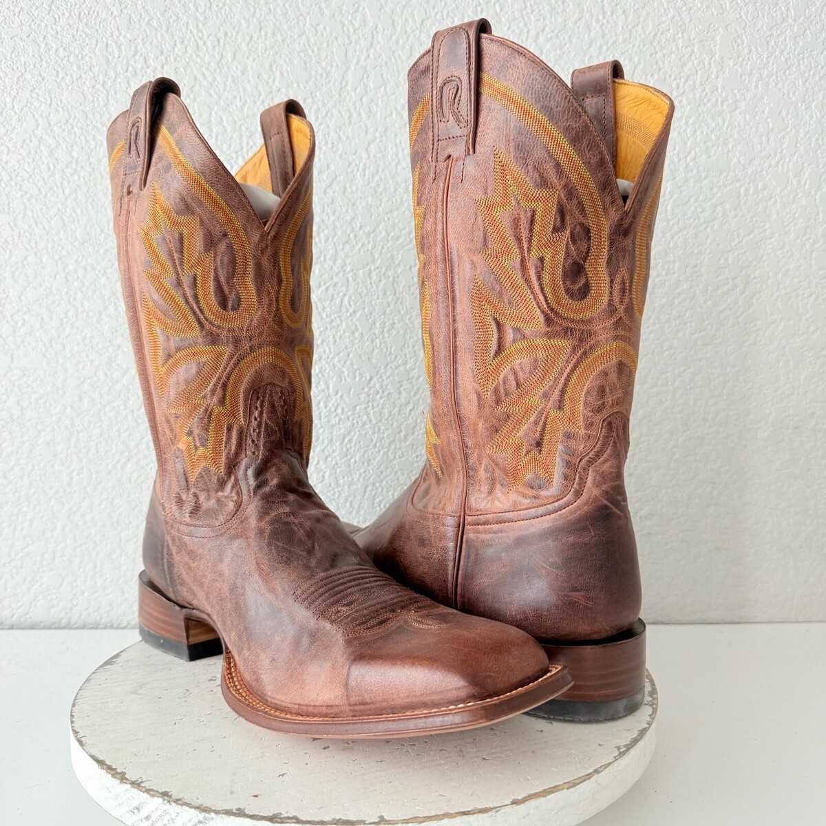 Rod Patrick Mens Cowboy Boots Cognac Leather Western Square Toe Size 14.5AA