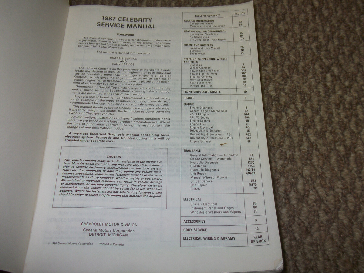 1987 Chevrolet Chevy Celebrity Service Shop and 50 similar items