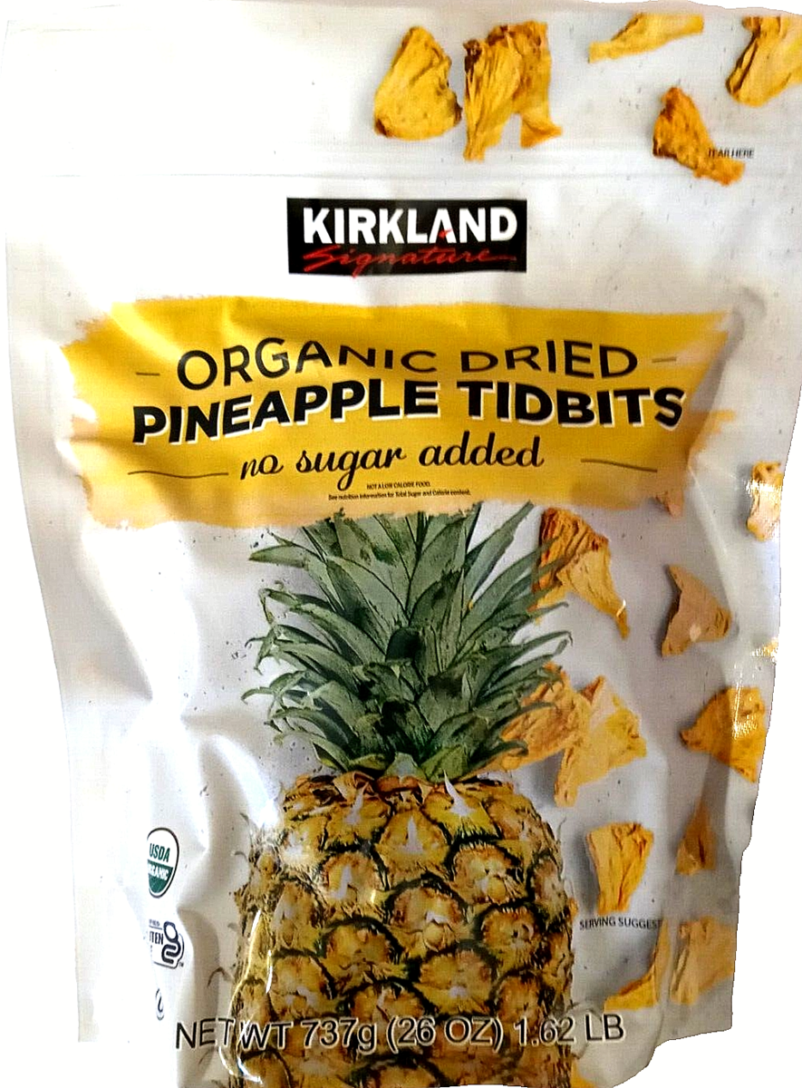 Kirkland Signature Organic Dried Pineapple Tidbits 26 Oz (1.62 Lb) EXP 09/2025