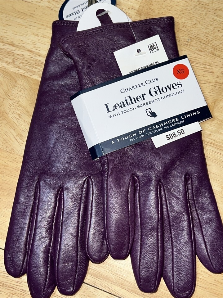 XS Charter Club Women's Cashmere Lined Leather Gloves In Gloxina $88.50
