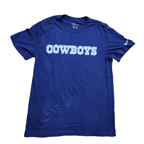 The Dallas Cowboys NFL Nike Men's Navy Sideline Shirt is hard to find and a fan apparel item featuring the name and logo.This officially licensed shirt, made by Nike, is in the team's signature blue color and designed for men in size L. Perfect for football enthusiasts and fans of the Dallas Cowboys, this shirt is a must-have for showing support during the regular season games.