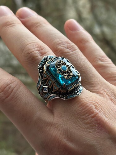 men silver ring sterling silver 925 ring with london blue topaz solid silver