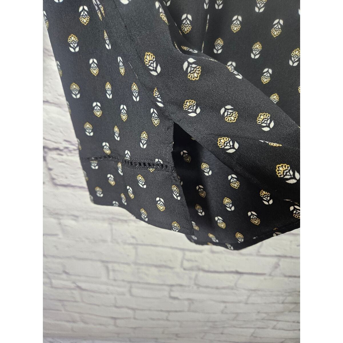 Princess Vera Wang Women's Blouse Top Large Black Yellow Floral Print Cut Outs
