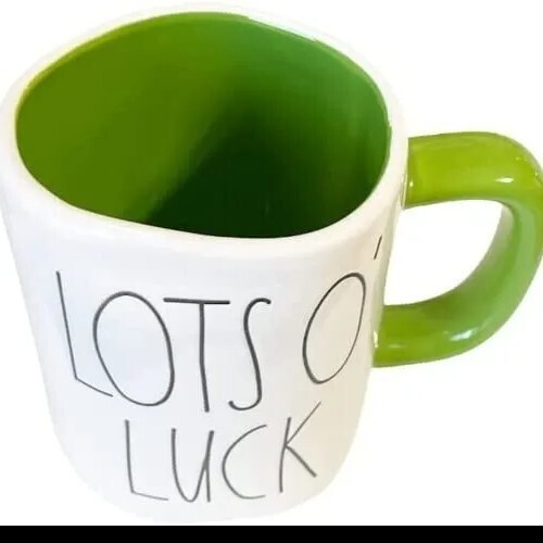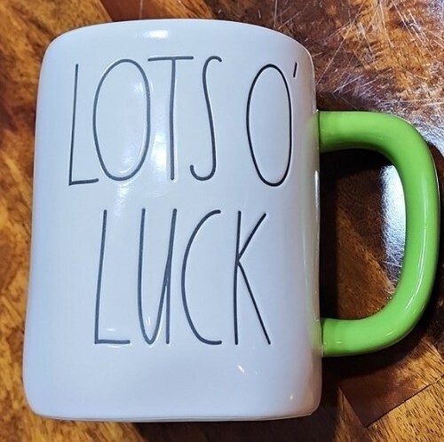 Rae Dunn Artisan Collection by Magenta ~ Green White ~ "Lots O' Luck" Mug