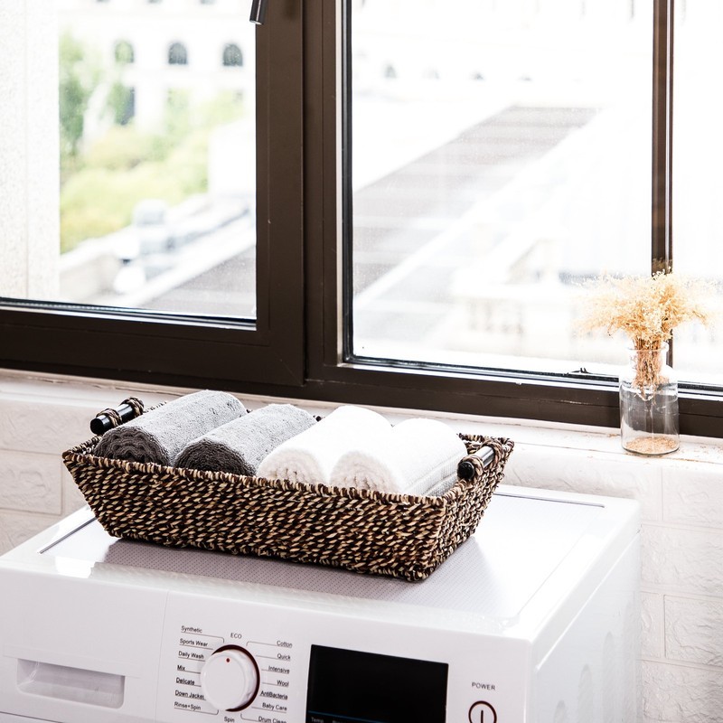 Mainstays Seagrass Basket with Wood Handles Home Decor Seagrass Material Wood Handles for easy transport and carrying Wipe with Dry Cloth to Clean Dimensions 17.5? L x 10? W x 4? H (at top) and 14.1"L x 6.69"W Unisex