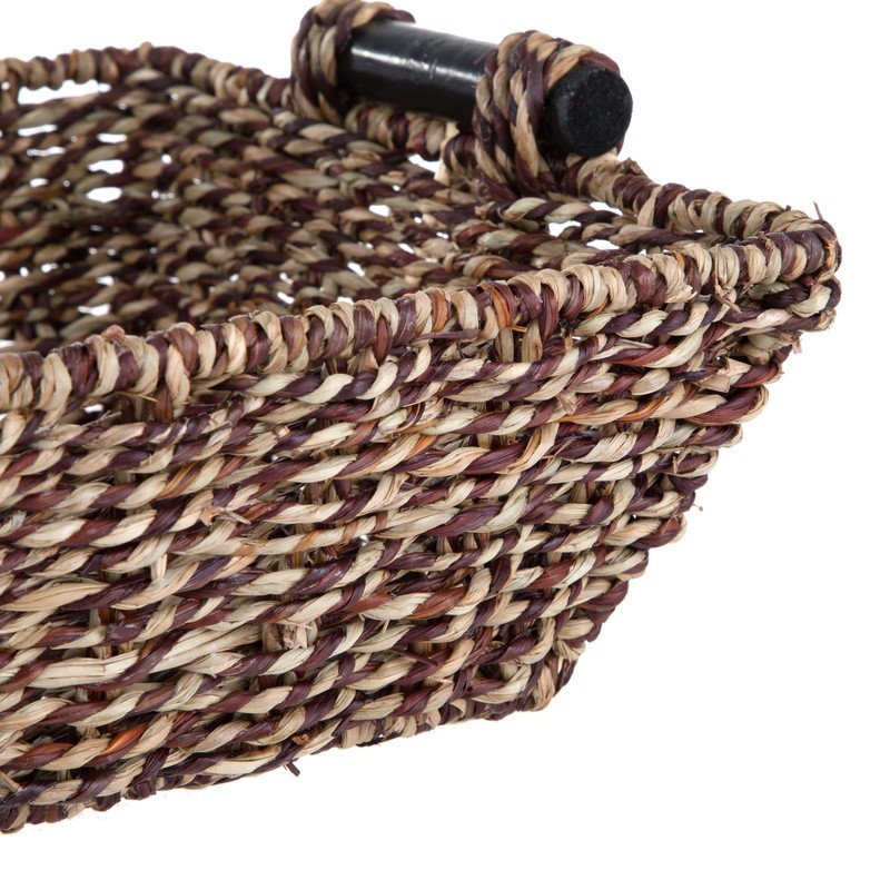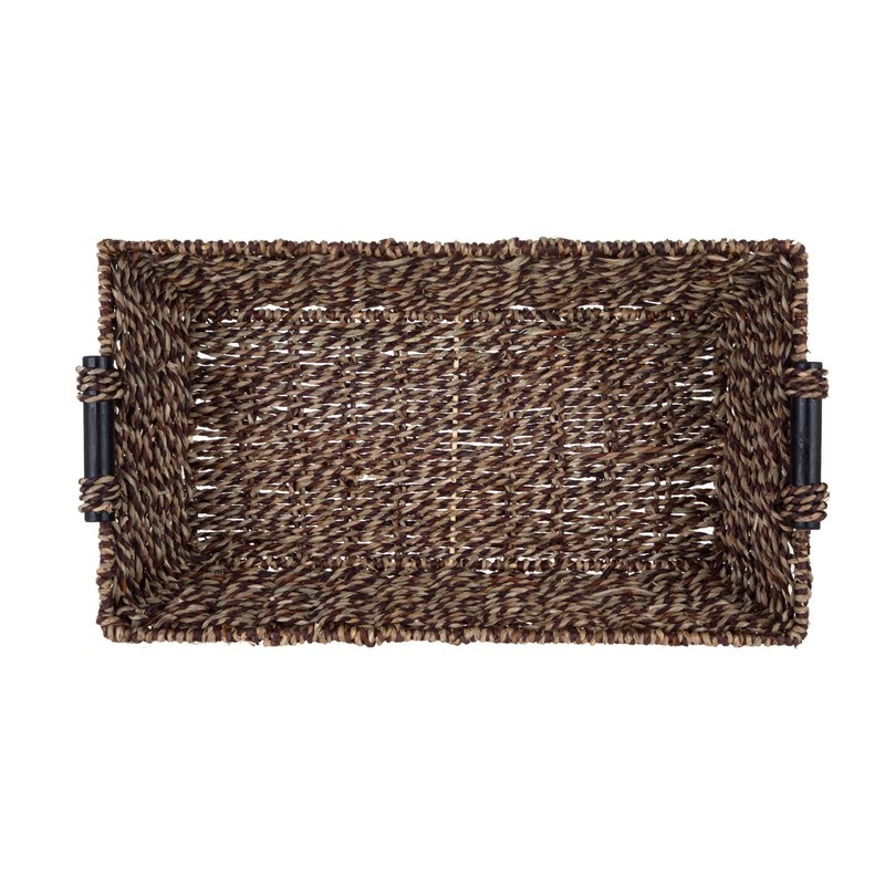 Rectangle Brown Seagrass Basket with Wood Handles, 17.5?L X 10? W X 4?H