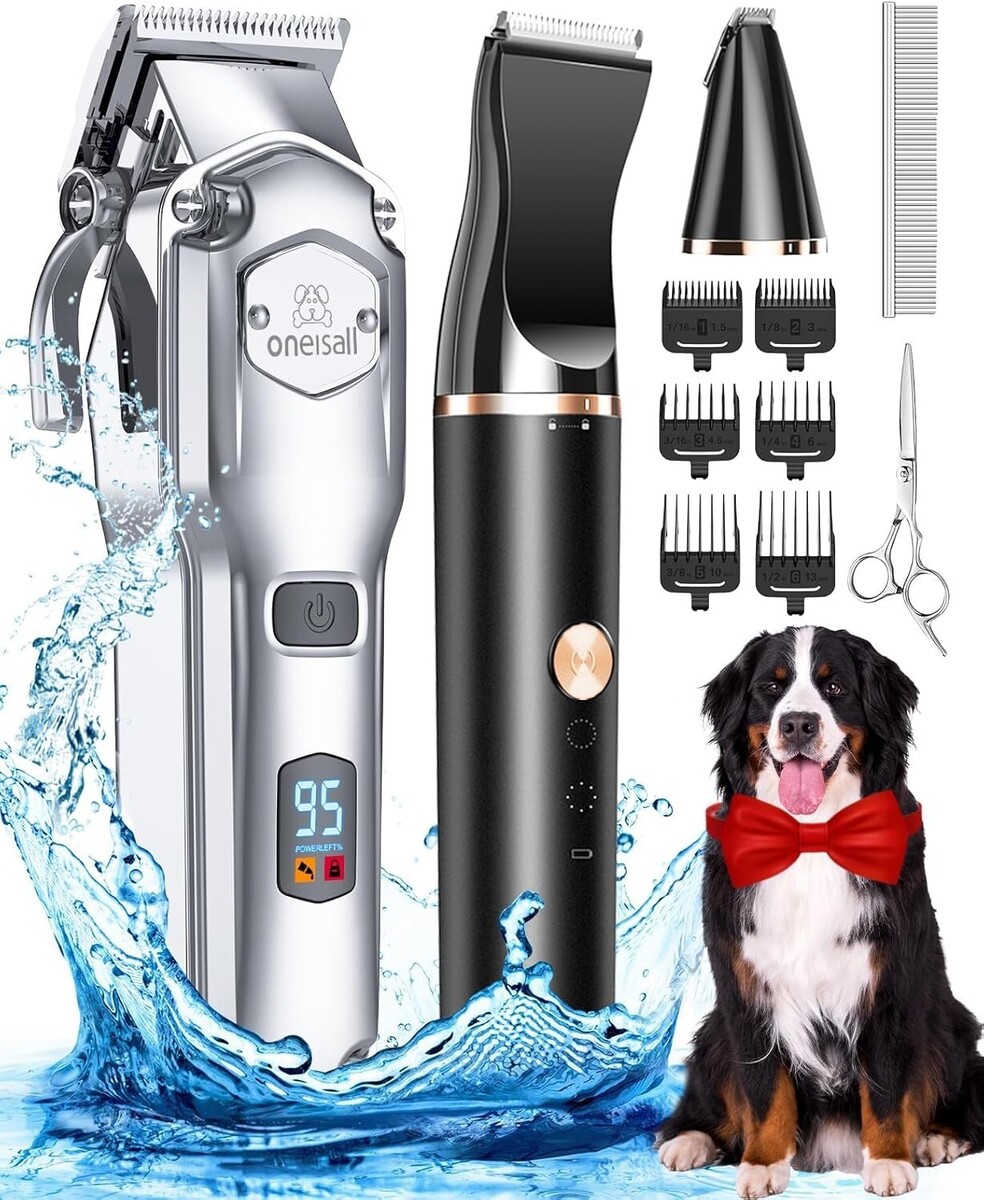 Dog Grooming Kit for Heavy Thick Hair Coats/Low Noise Rechargeable Cordless Pet Shaver with Stainless Steel Blade and Dog Paw Trimmer/Waterproof Dog Shaver for Dogs Pets Animals