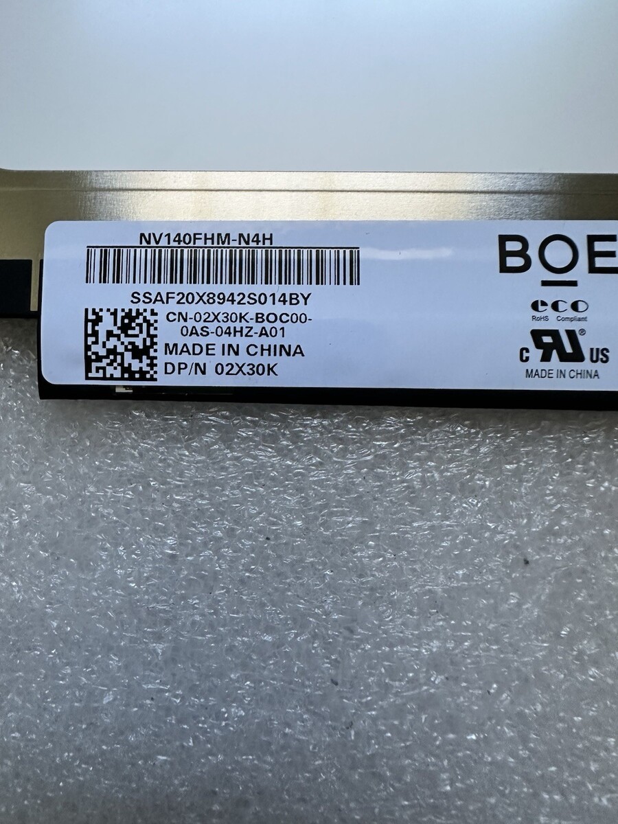 BOE 14” Matte Laptop LCD FHD Screen 30pin Display Panel 2X30K NV140FHM-N4H, READ