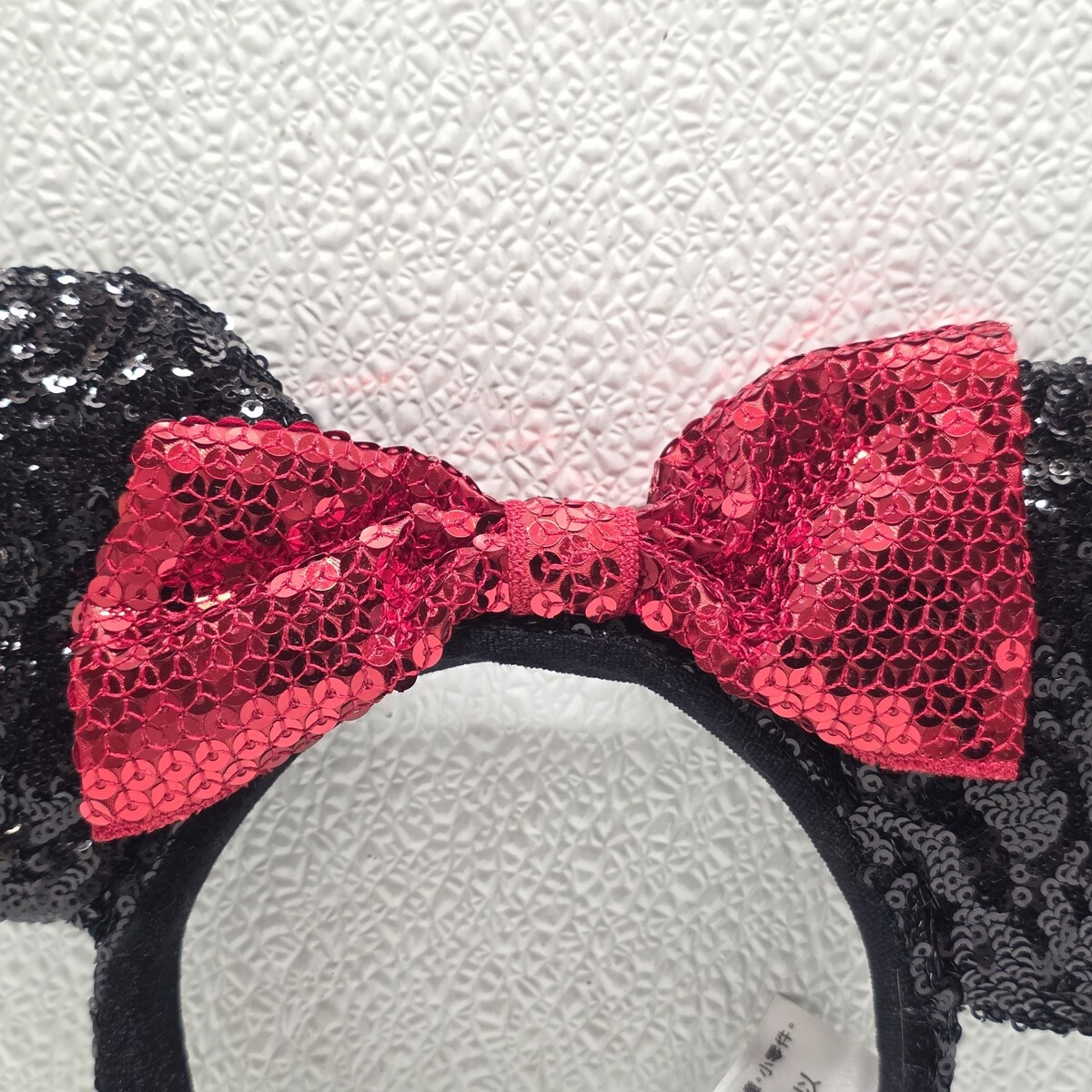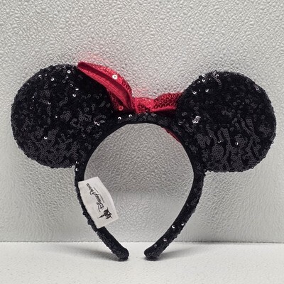 DISNEY PARKS Minnie Mouse Black Sequin Red Sequin Bow Ear Headband