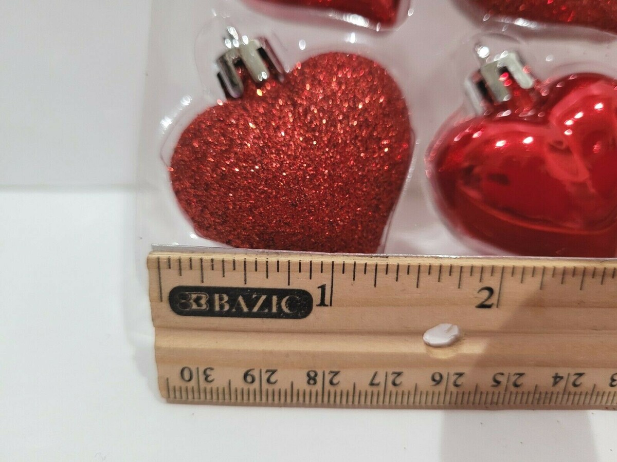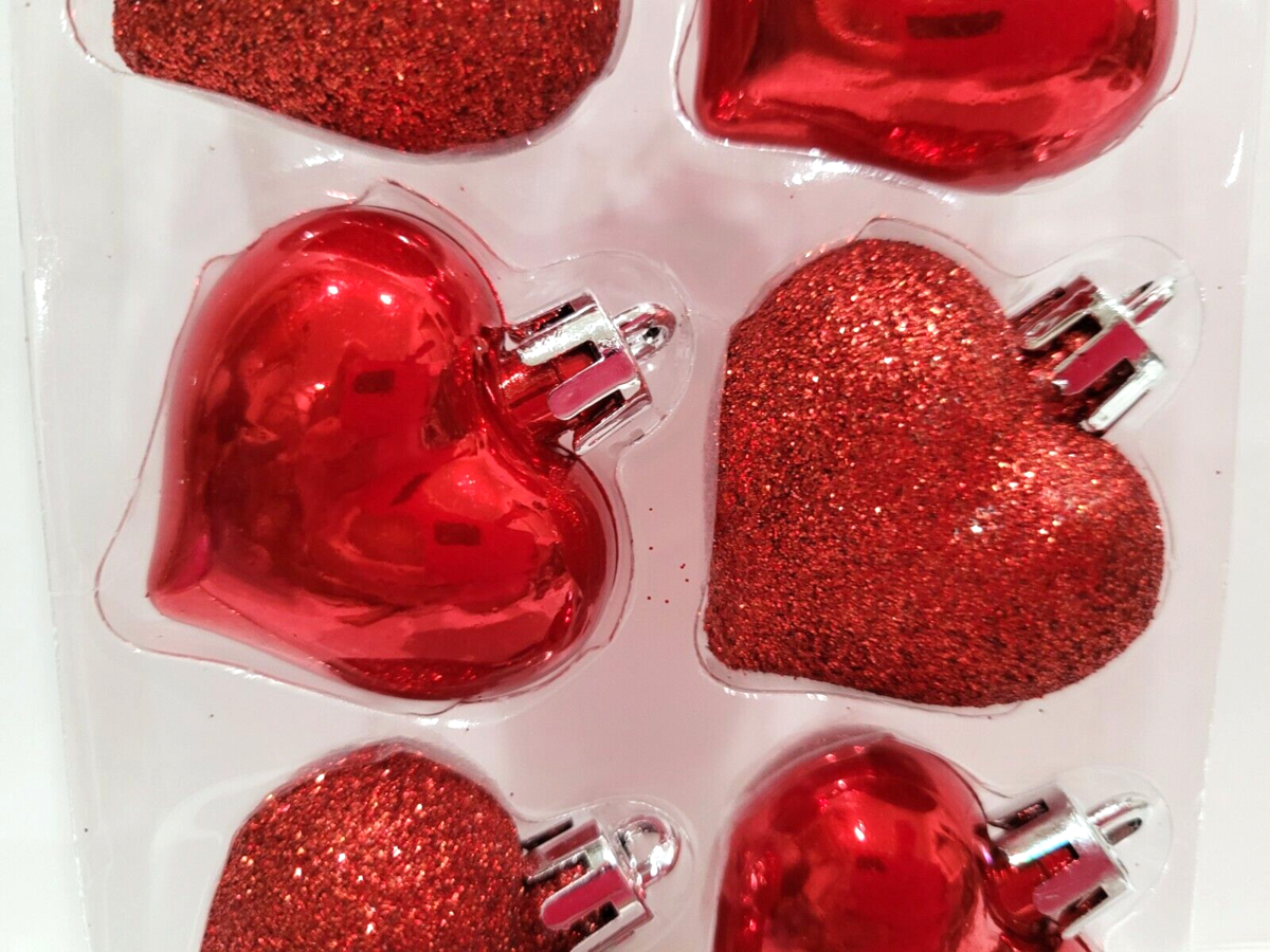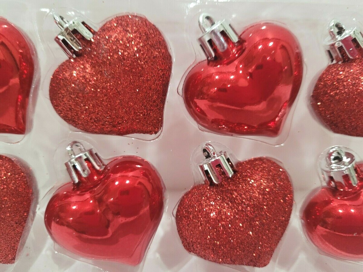 8pc Valentines Red Glitter Plastic Hearts Tree Ornaments Decor 1.75"