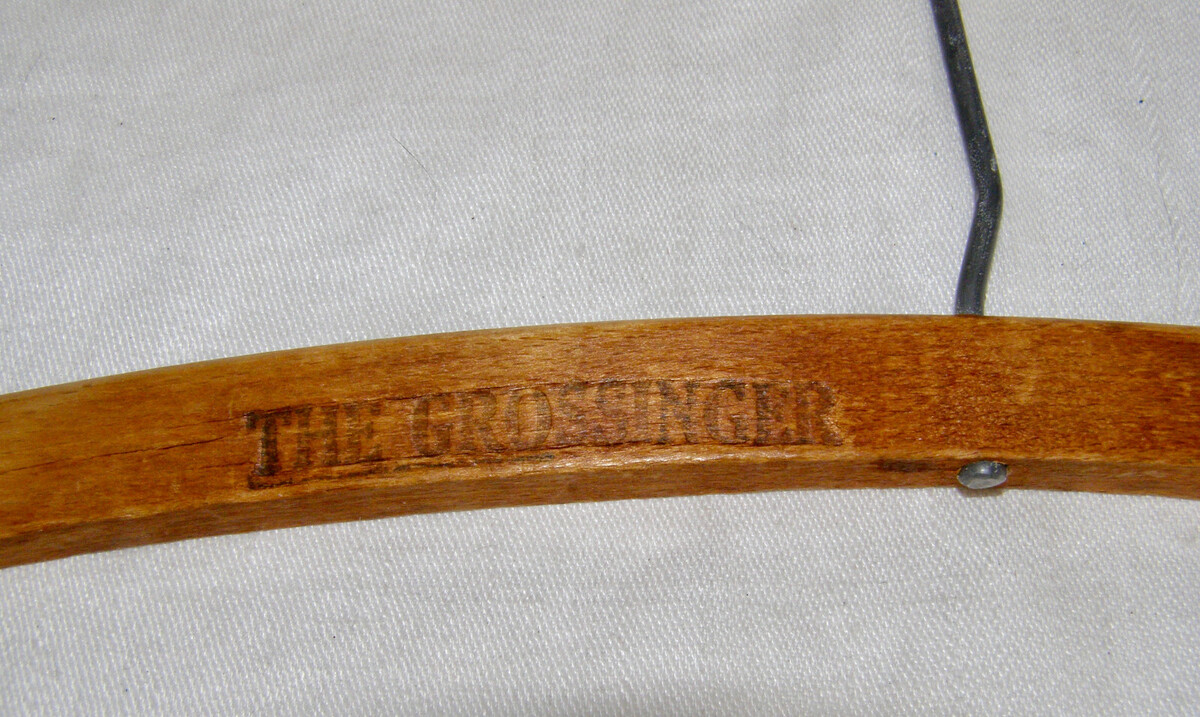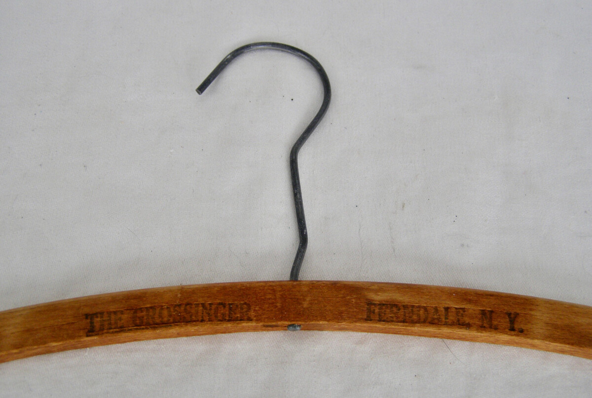 VINTAGE “THE GROSSINGER, FERNDALE, N.Y.” WOODEN ADVERTISING HANGER - LONG HOOK