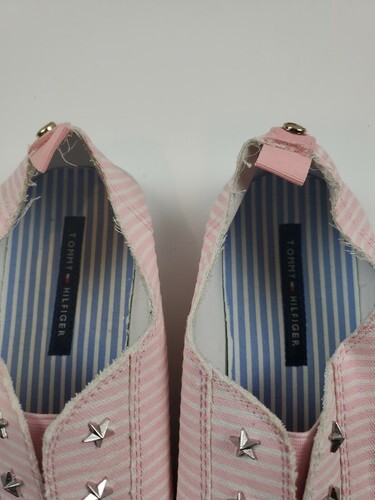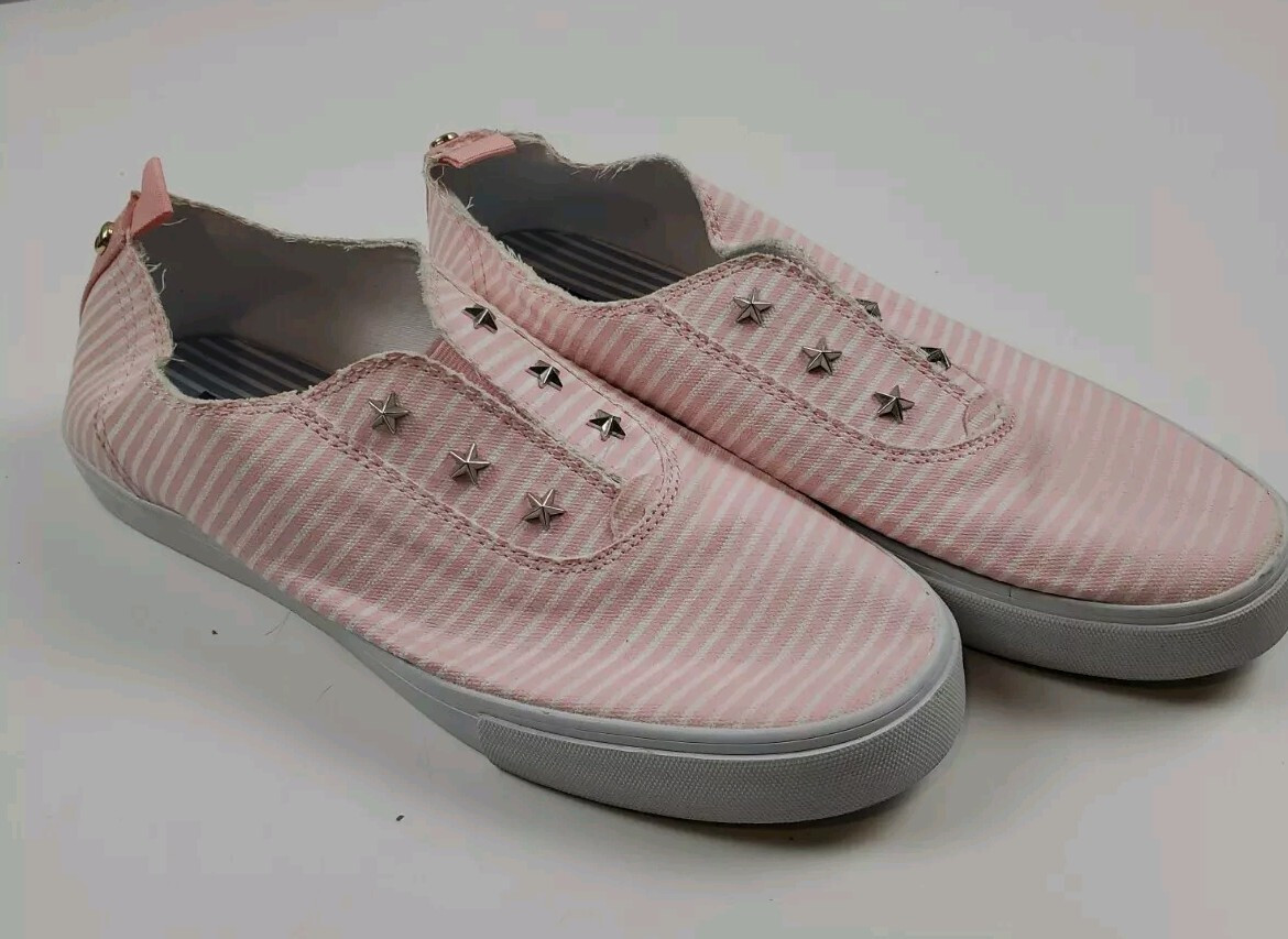 Tommy Hilfiger Pink Striped Slip-on Casual Flat Womens Shoes Sneakers Sz 9.5