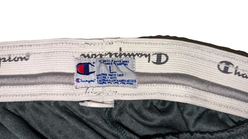 This product is a vintage pair of Champion Notre Dame Fighting Irish shorts in size Large, featuring the team's classic green color with the NCAA 90s logo. The shorts are targeted towards male fans of the basketball team, making them a unique and nostalgic addition to any college sports memorabilia collection. With its retro design and authentic Champion branding, they are sure to be a cherished piece for any fan of the Notre Dame Fighting Irish.