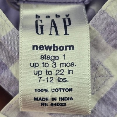 Baby Gap Newborn Plaid Overalls 0-3 M Lavender White 100% Cotton VTG Y2K Preppy