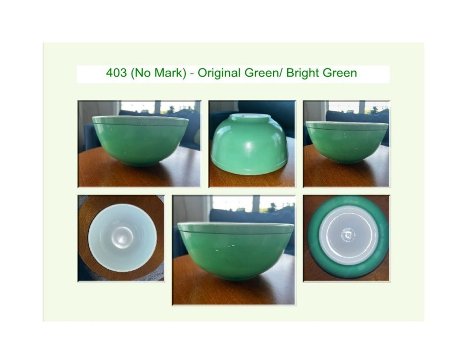 - 403-A17- 2.5 Quart - Original Green/ Bright Green ~ 1945 - Some coloring spots on outside of bowl.