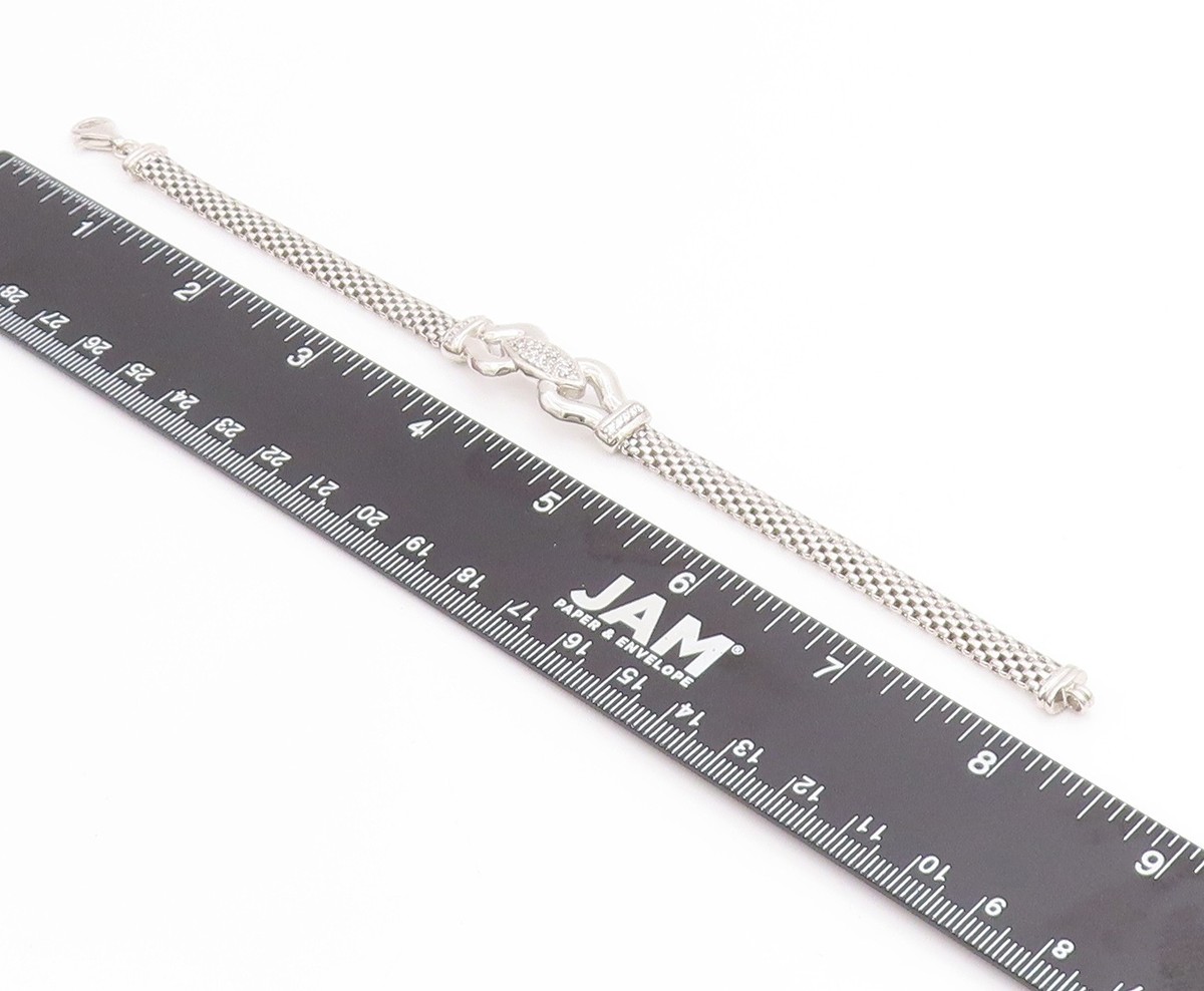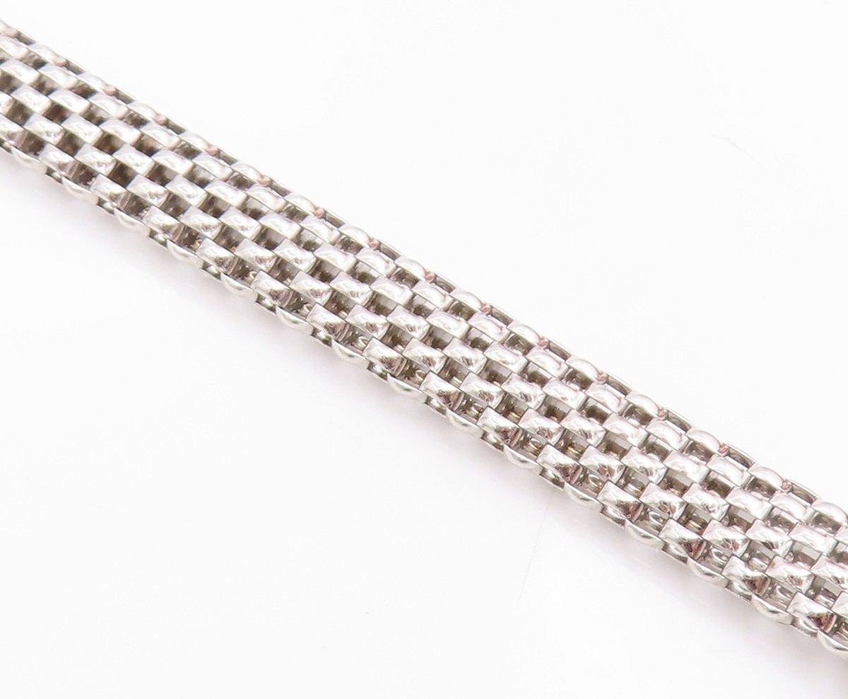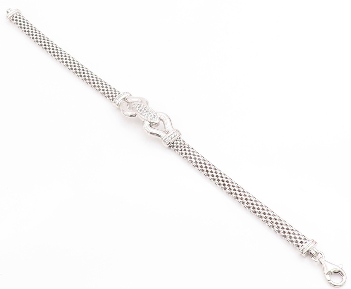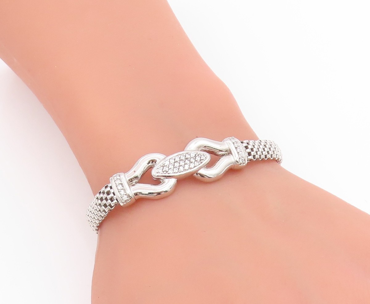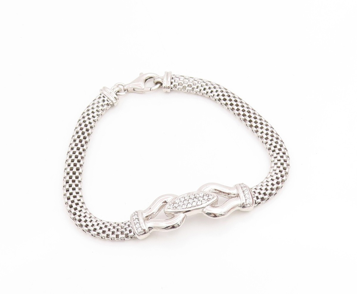 925 Sterling Silver Vintage Bracelet Sparkling CZ Modernist Mesh Link BT11858