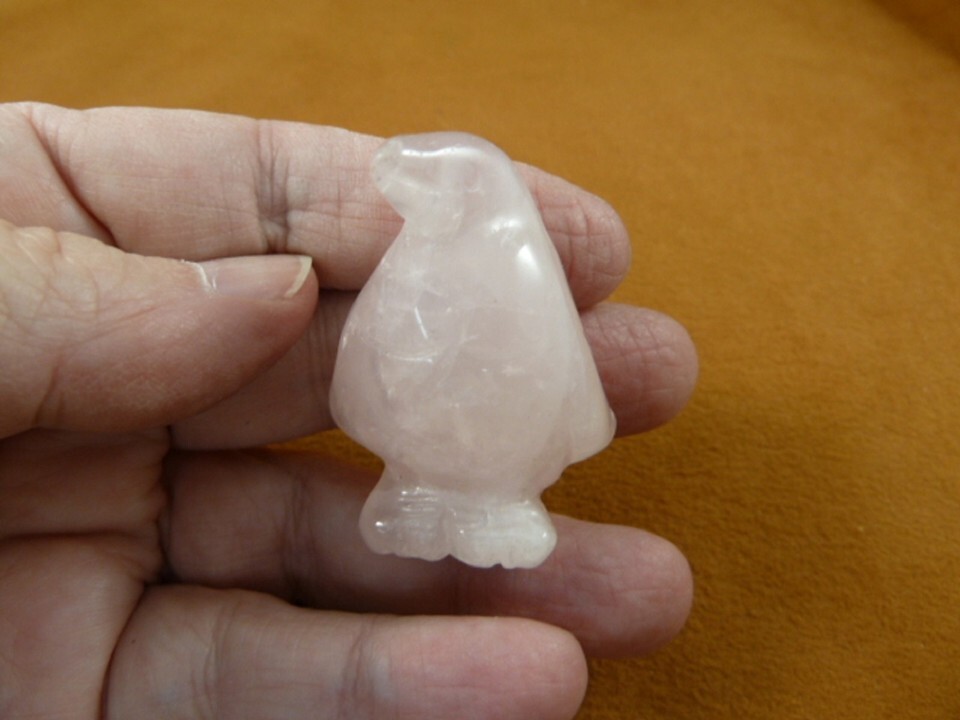 (internal #(Y-PEN-570) Excellent figurine of a PENGUIN measures 1-5/8" tall. Superb quality of natural, all polished, PALE PINK ROSE QUARTZ CRYSTAL gemstone, this gem has been hand-crafted in China.
