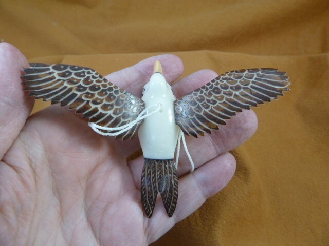 (#TNE-BIR-FR-292-a) Beautifully hand crafted tagua nut figurine of a Frigate bird, hanging ornament, 2-3/4" long x 3-3/4" wingspan x 2-3/8" tall.
