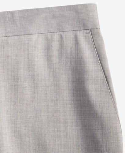 Flat front; finished hem; no cuff