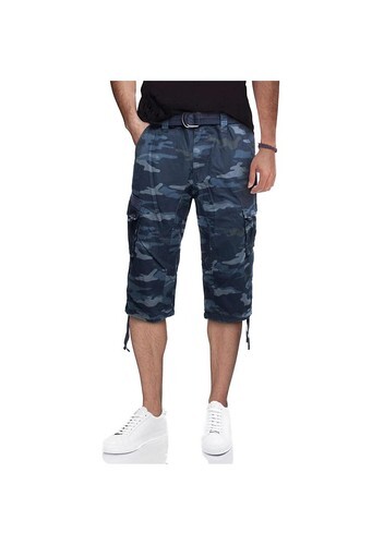 X RAY Mens Belted 18in Inseam Below Knee Long Cargo Shorts Navy Camo Size 38W