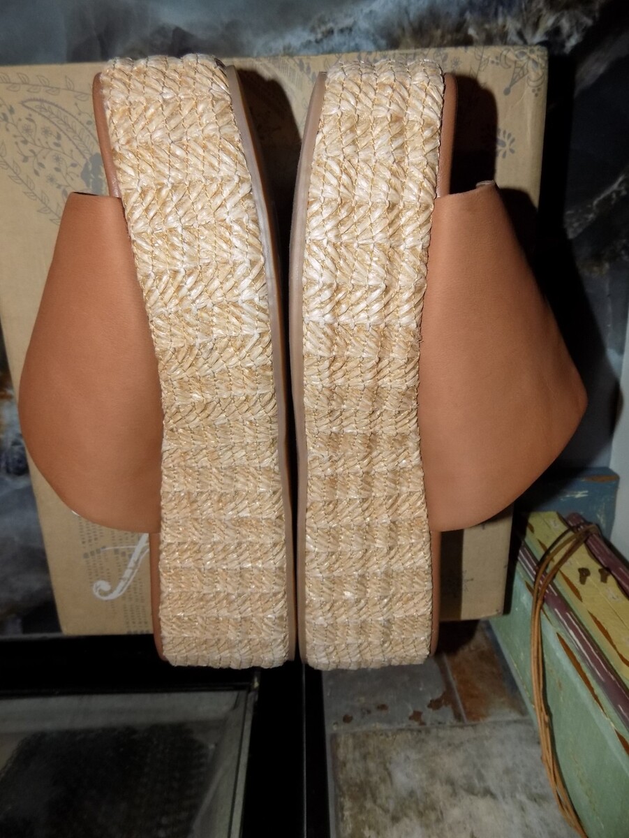 FREE PEOPLE TAUPE HARBOR RAFFIA FLATFORM SANDALS SIZE 9.5 WOMEN'S NEW