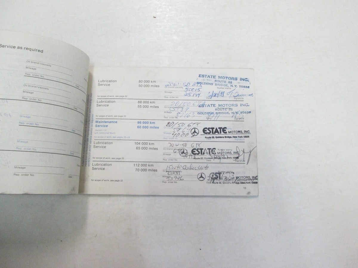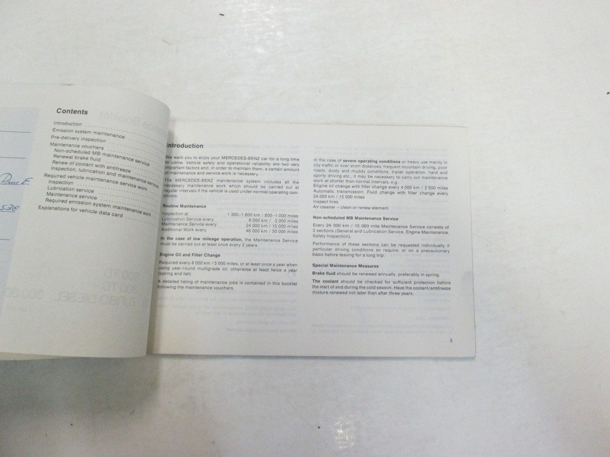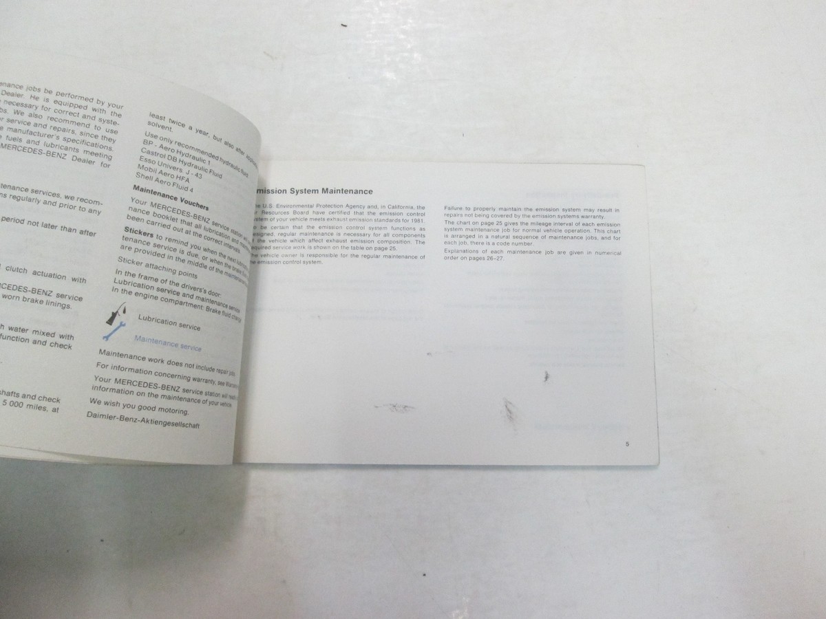 1982 MERCEDES BENZ PASSENGER CARS W/ DIESEL ENGINE MAINTENANCE BOOKLET WEAR