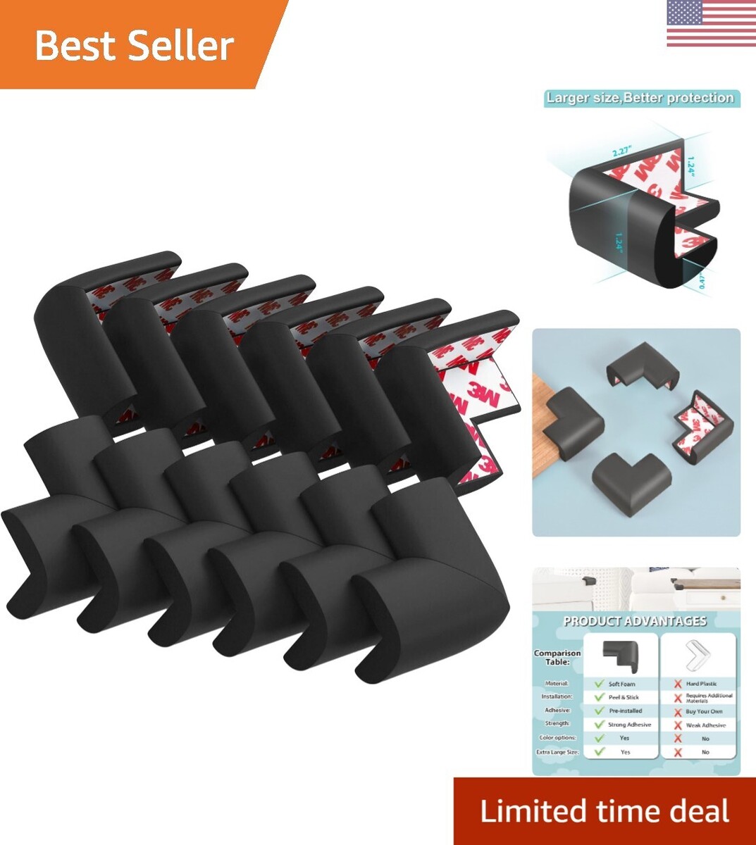 12 Pack Soft Corner Protector Baby Proofing Edge and Corner Guards, Safety Pre-Taped Rubber Foam Furniture Bumper for Fireplace, Table, Stair, Cabinet Black