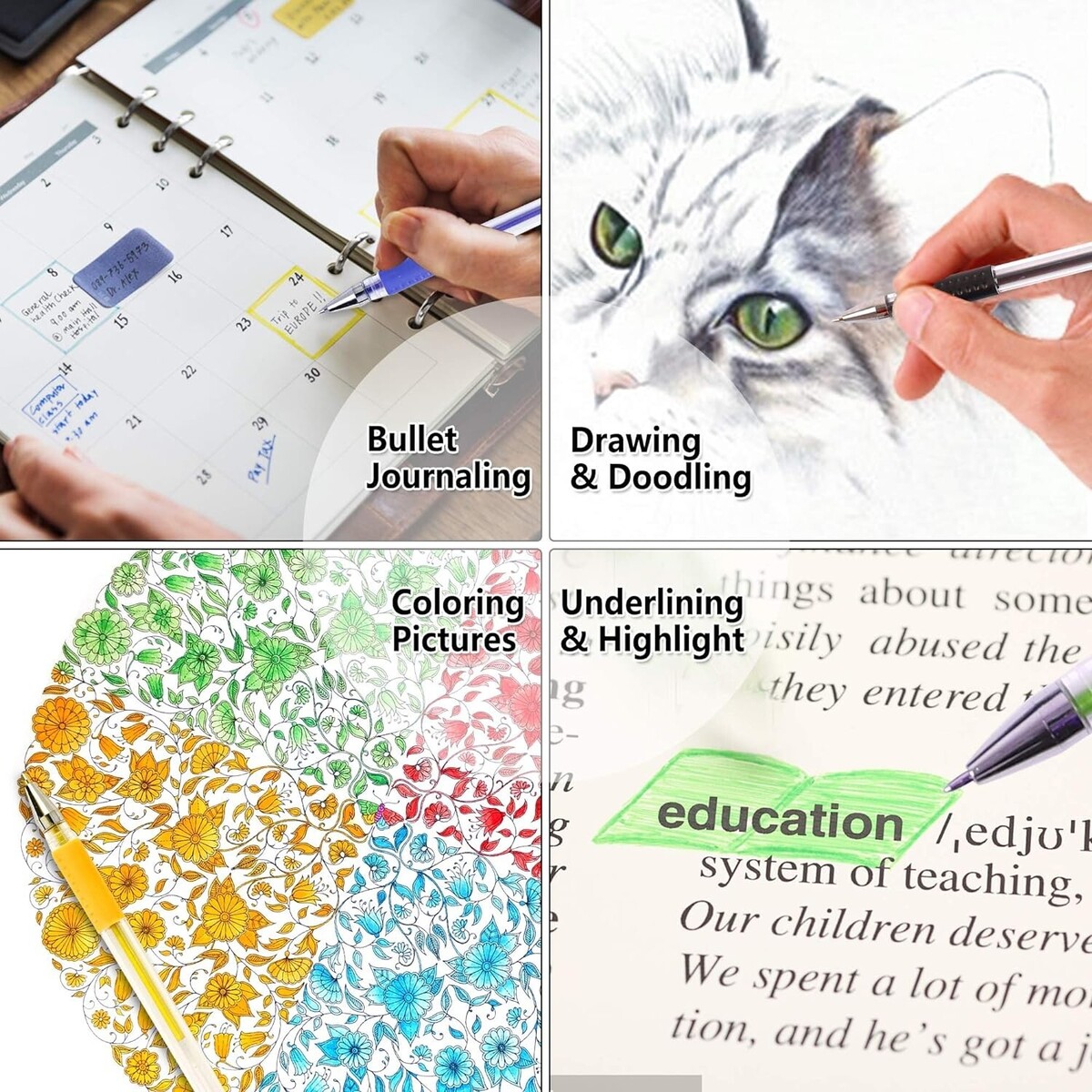 PREMIUM QUALITY :These Gel pens are made with high quality water- based ink makes it can be used without worrying about skipping,smearing or are also non-toxic, acid-free,conforms to ASTM D-4236 and EN71.
