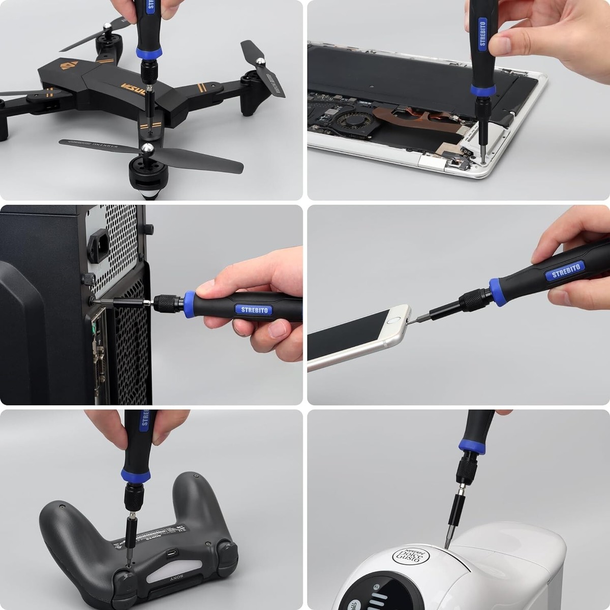 ?Wider Application?The Precision Screwdriver Set is professionally designed for electronic repair. With 140 precision bits - Phillips, Pentalobe, Torx Security, Star, SAE/Metric Hex, JIS, Flat Head, Triwing, Triangle, Square and more, this screwdriver kit is versatile to meet your different daily use, such as PC, Computer, Laptop, Cell , Macbook, RC Car, Drone, Nintendo Switch, PS4 Controller Console, Watch, Eyeglass, Coffee Machine, Ring Doorbell, and other IT tech devices