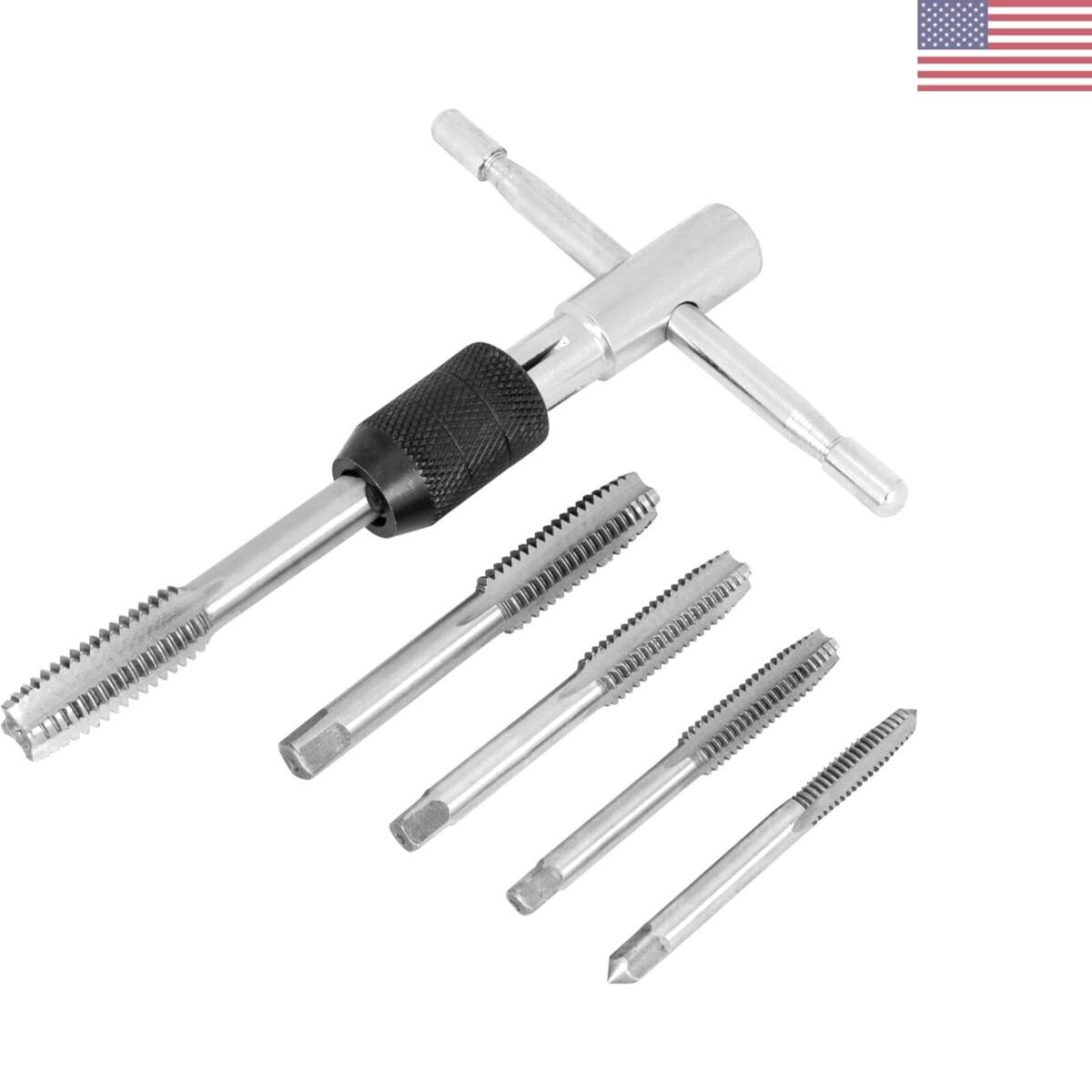 The 6Pc SAE Tap Wrench Kit is an essential tool for anyone who needs to cut and renew internal threads for standard pipe sizes. Featuring dual holding jaws for large and small-sized taps, this wrench provides versatility and convenience. The movable T-handle provides additional leverage, allowing you to work more efficiently and effectively. Made from tungsten steel, the Tap Wrench Kit is built to last, even under heavy use. The kit includes SAE sizes: 1/4 in. NC20, 5/16 in. NC18, 3/8 in. NC16, 7/16 in. NC14, 1/2 in. NC13, making it a great tool for thread maintenance, repair work, and re-threading. Use with the recommended drill bit sizes for optimal results.